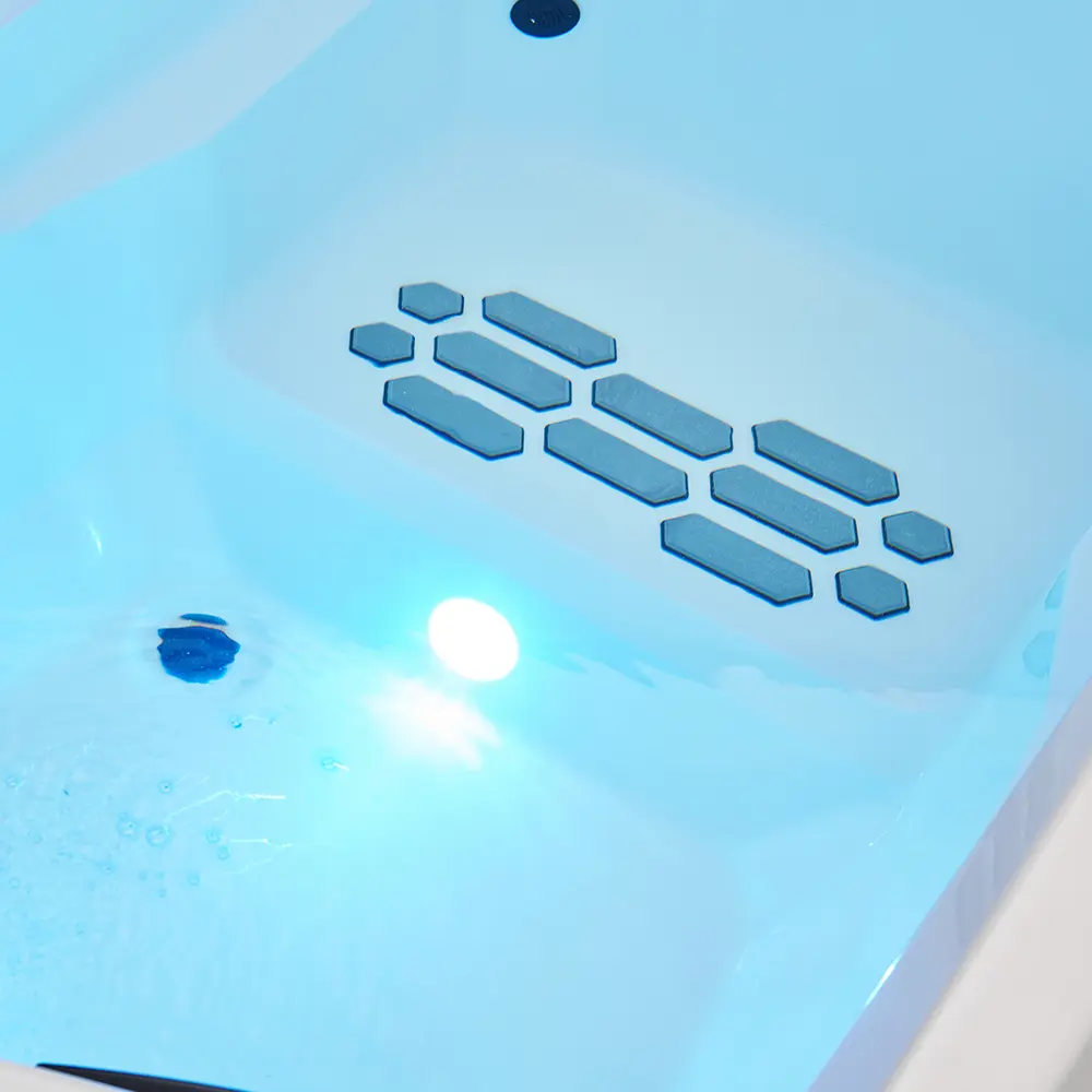 Внешнее отображение температуры позволяет точно контролировать параметры воды перед началом сеанса. Встроенные форсунки (3 шт.) создают циркуляцию воды, усиливая охлаждающий эффект, а LED‑подсветка добавляет атмосферности. Для безопасности и удобства эксплуатации предусмотрены система перелива и надежный дренаж.