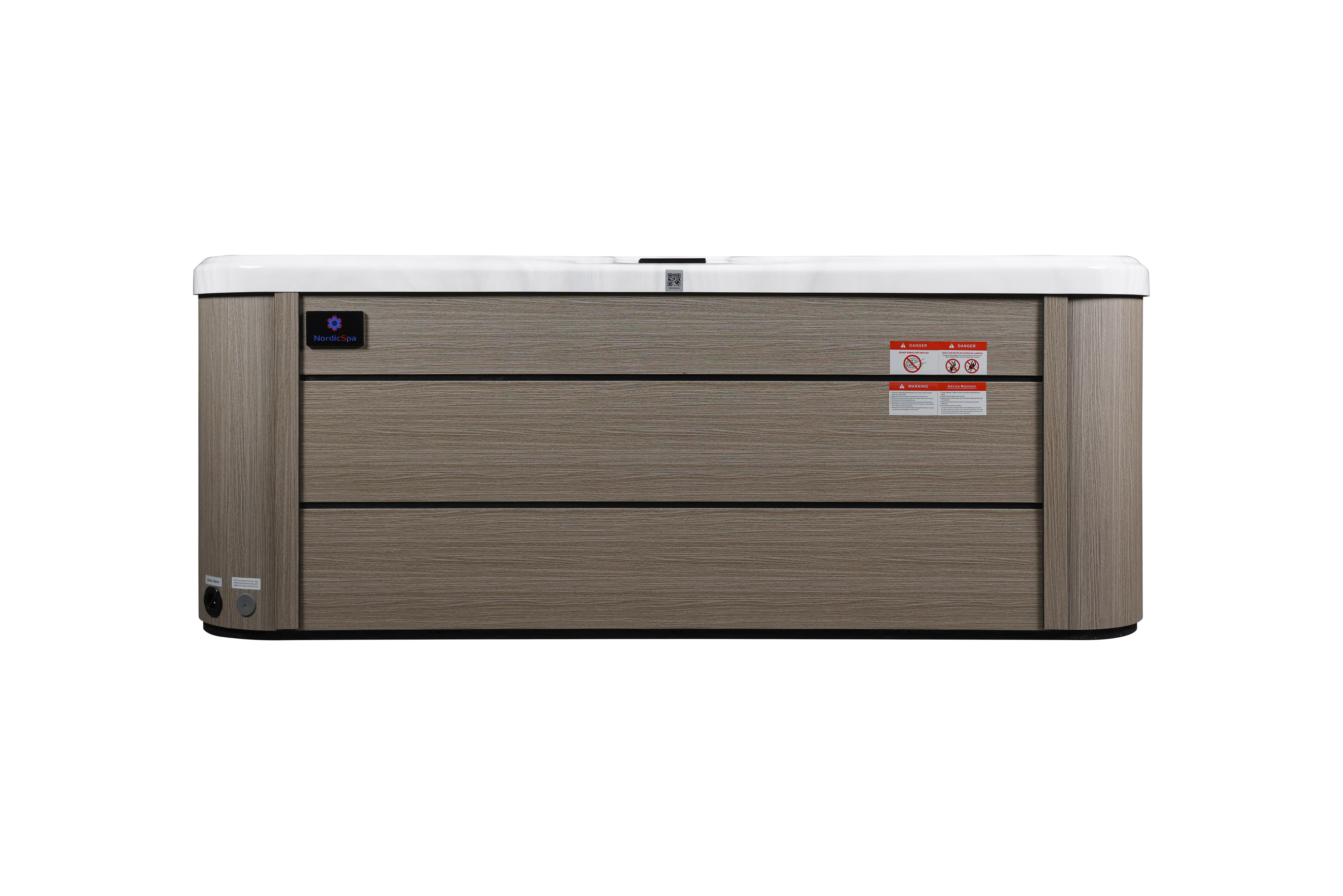 NordicSpa Khed с размером чаши 2,3 x 2,3 м идеально подходит для установки как в помещении, так и на улице. Просторная чаша с четырьмя эргономичными подголовниками комфортно вмещает до пяти человек, создавая условия для полноценного отдыха и общения.