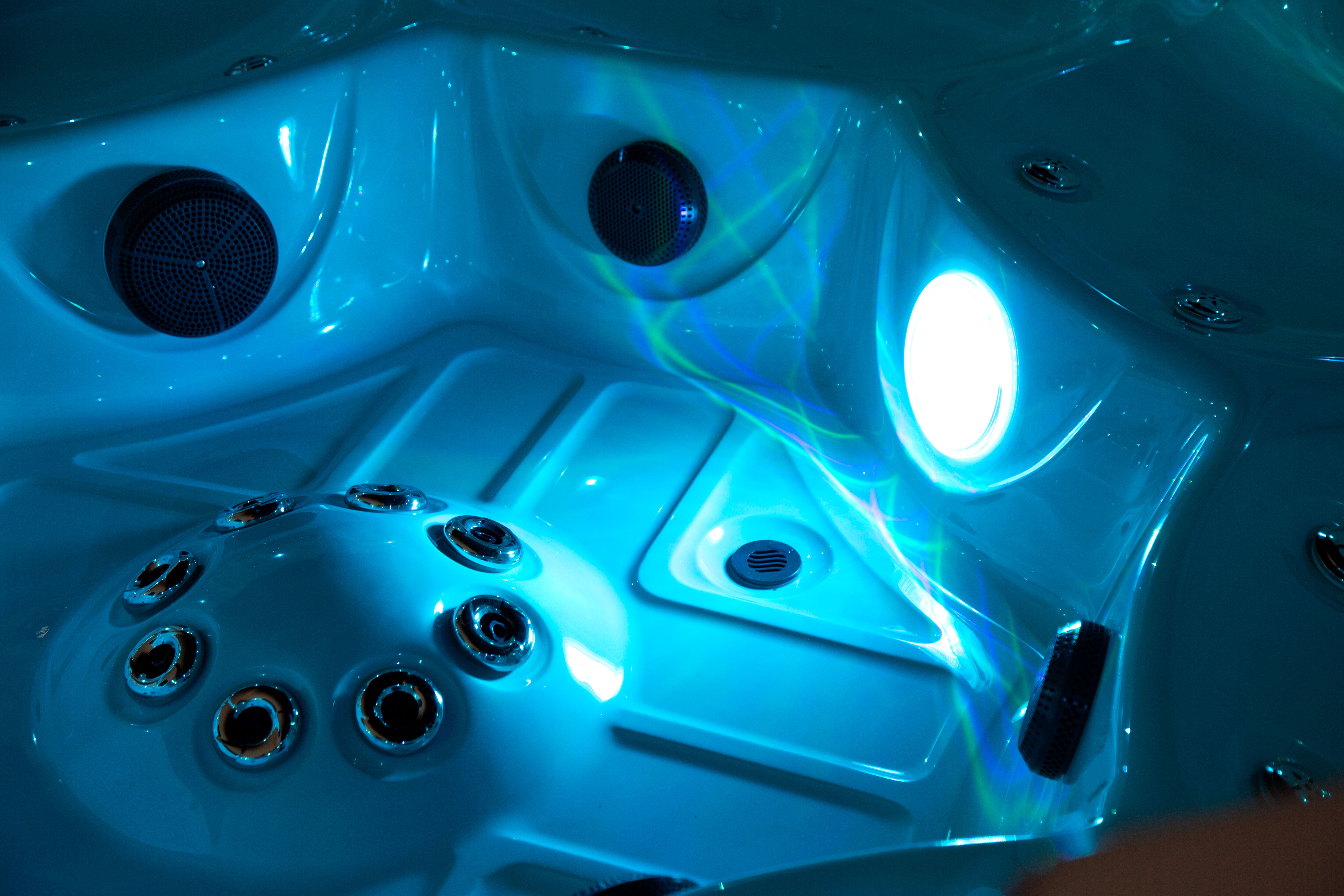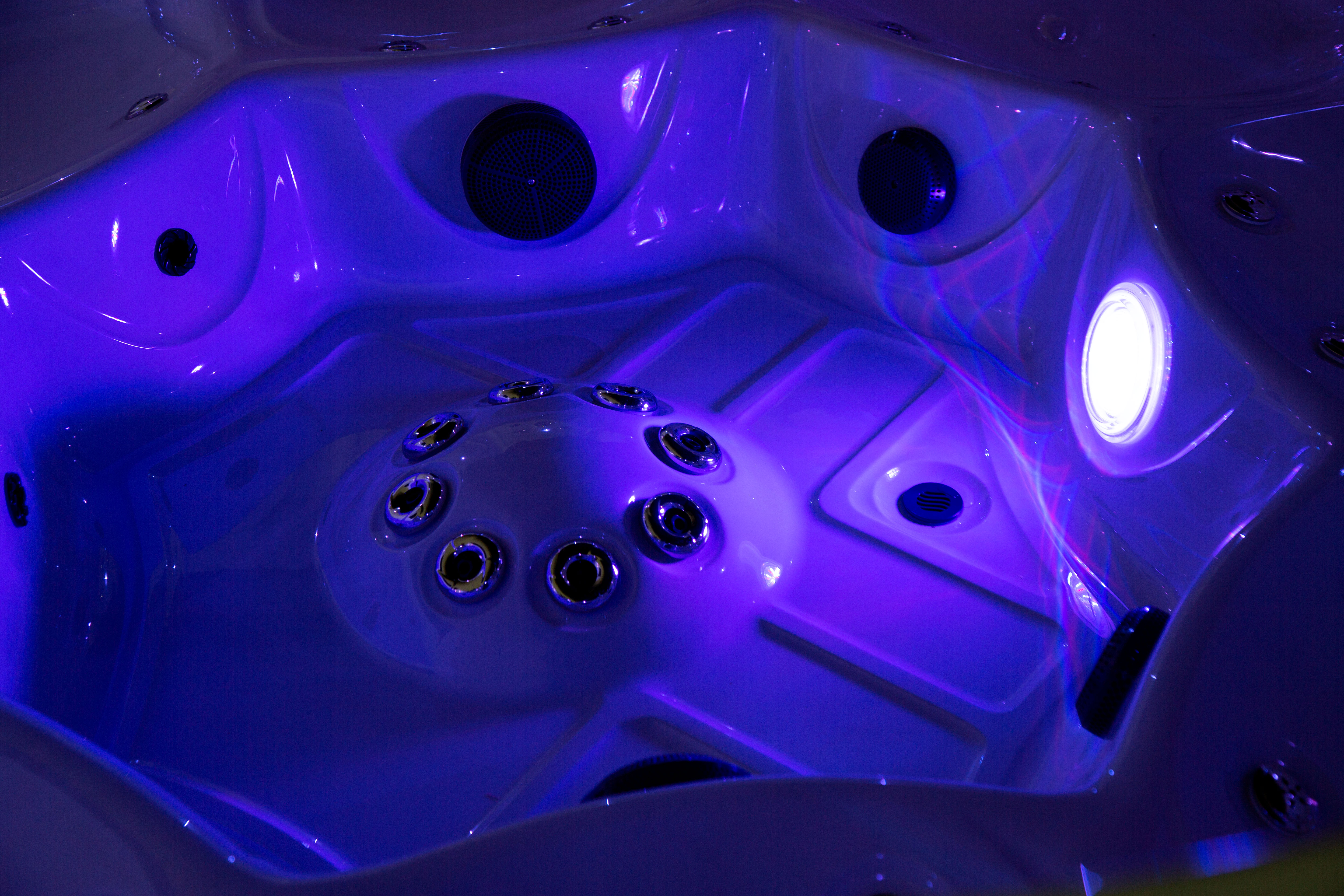 Многоцветная подводная LED-подсветка и 8 точечных светодиодов по периметру создают неповторимую расслабляющую атмосферу для вашего вечернего отдыха.