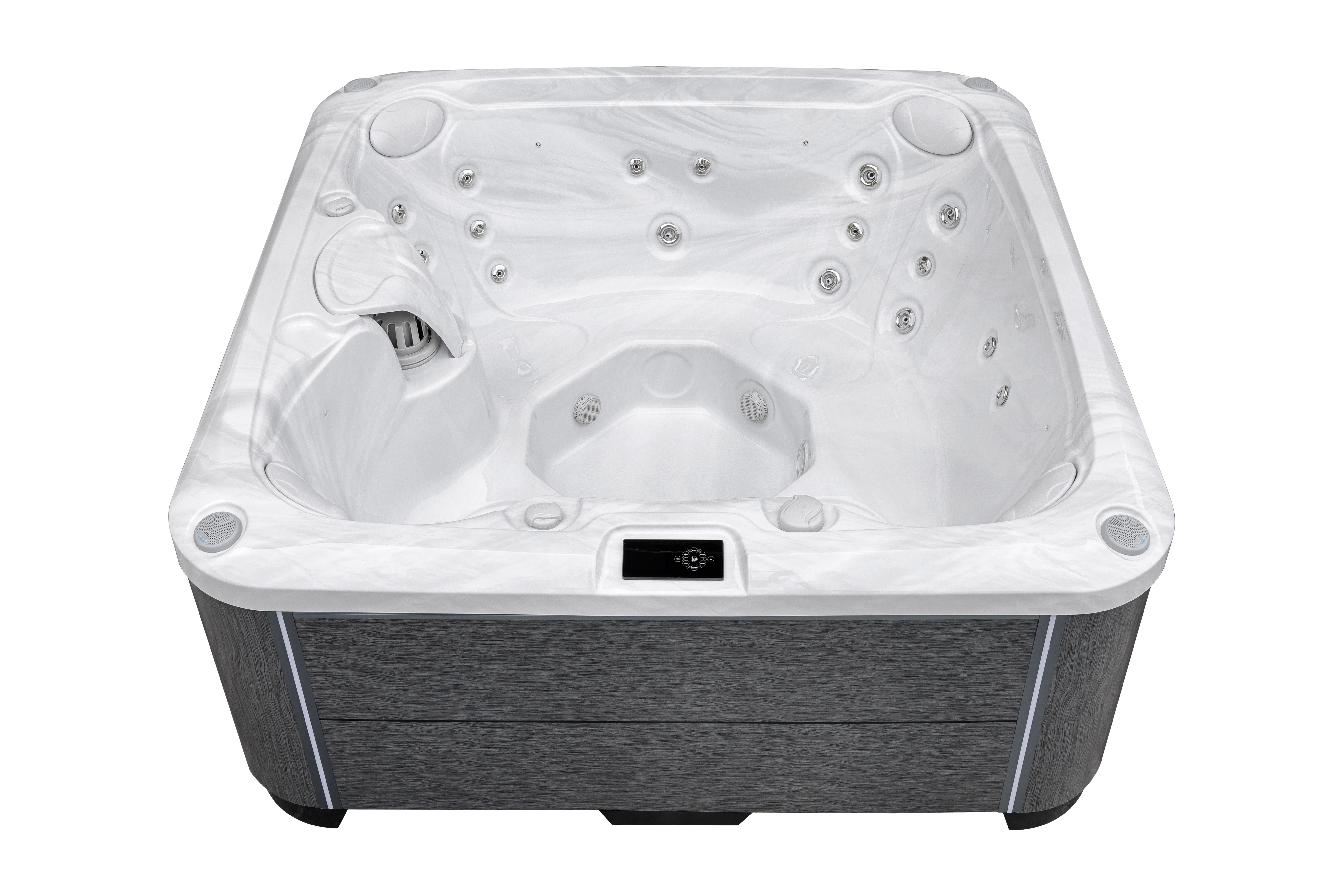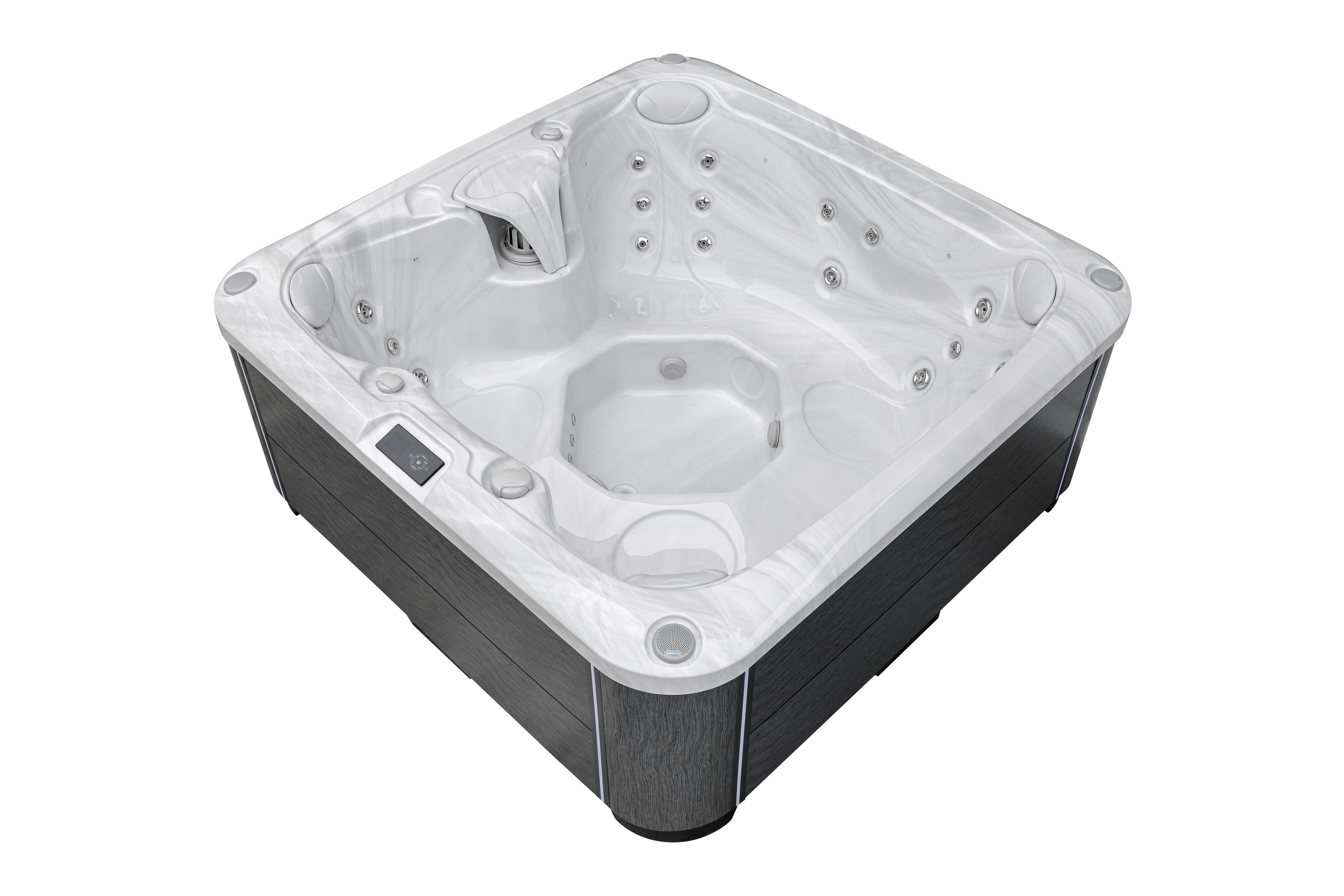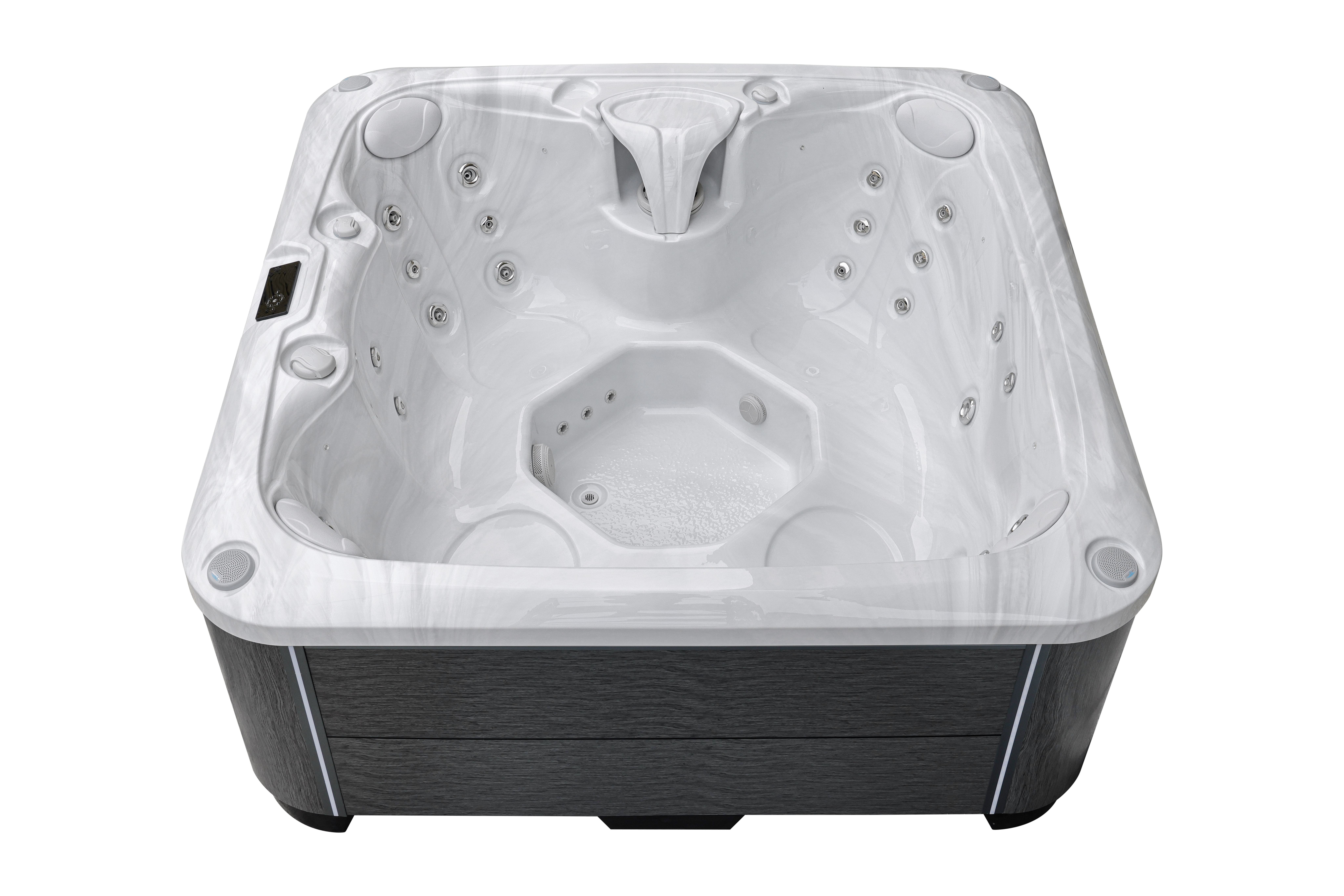 Сенсорная панель управления с Wi-Fi позволяет контролировать все функции спа через смартфон, а два регулирующих клапана подачи воздуха обеспечивают точную настройку интенсивности массажа.