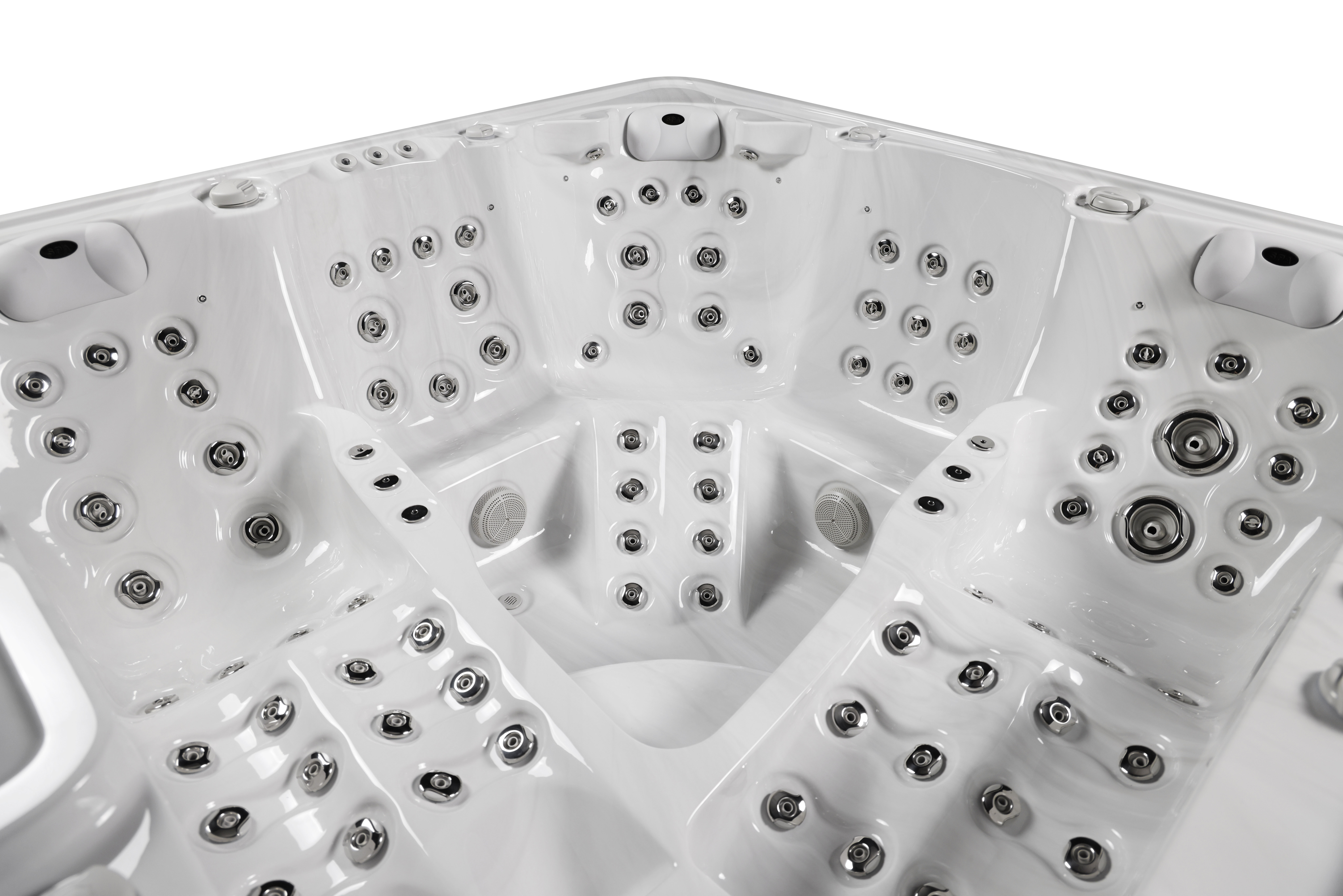 NordicSpa Tyur с размером чаши 2,25 x 2,25 м идеально подходит для установки как в помещении, так и на улице. Просторная квадратная чаша с тремя эргономичными подголовниками комфортно вмещает до пяти человек, создавая королевские условия для полноценного отдыха и общения.