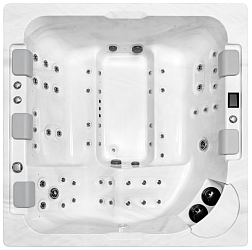 В гидромассажном СПА-бассейне Lovia Spa L510 квадратной формы одновременно свободно может поместиться до 6 человек. В чаше бассейна предусмотрено 5 мест для сидения, а также 1 полноценный комфортабельный лежак. Такой гидромассажный бассейн то, что нужно для большой семьи или проведения времени с веселой компанией друзей. В нем даже маленькие дети будут чувствовать себя комфортно, несмотря на глубину чаши.