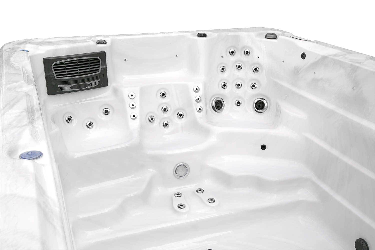 Oslo Turbo оснащен уникальным пропеллерным насосом мощностью 4,6 кВт с 16 скоростными режимами, который создает равномерный мощный поток воды для комфортного плавания на месте. Второй насос 2,2 кВт обеспечивает эффективную работу 35 массажных форсунок для полноценного спа-релакса.
